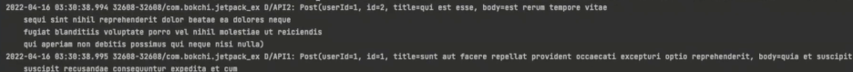 결과:API로 받아온 정보 두개가 로그에 찍혔다.