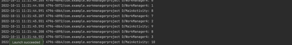 실행결과: WorkManagerB의 값 10을 전달한다. result2는 존재하지 않아 default값인 1000을 출력한다.
