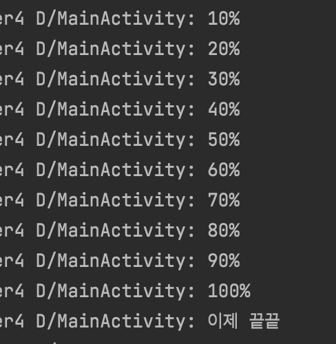 - WorkManager의 작업 진행에 따라 처리를 해줄수 있는 코드.(작업 진행률을 %로 나타내는 코드를 먼저 작성했다.)